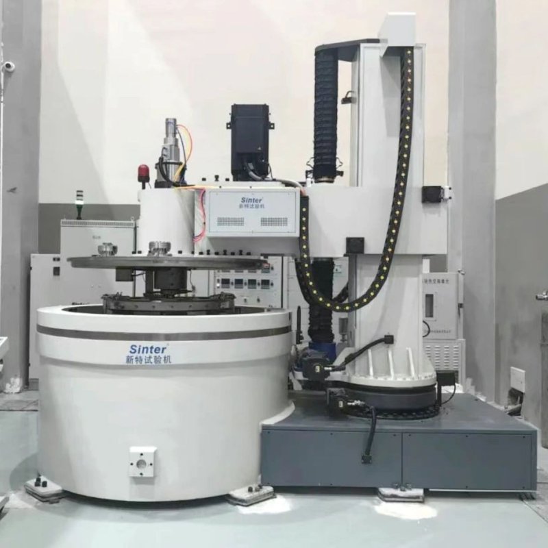 本裝置主要由超重力離心機(jī)、真空系統(tǒng)、旋轉(zhuǎn)高溫爐加熱系統(tǒng)、旋轉(zhuǎn)高溫爐溫控系統(tǒng)、旋轉(zhuǎn)高溫爐冷卻系統(tǒng)、旋轉(zhuǎn)導(dǎo)電滑環(huán)、旋轉(zhuǎn)冷卻滑環(huán)系統(tǒng)等組成。該裝置全程由計(jì)算機(jī)控制實(shí)現(xiàn),即對(duì)離心機(jī)轉(zhuǎn)速、高溫爐加熱溫度、冷卻速率、真空度等參數(shù)全程進(jìn)行采集控制,數(shù)據(jù)處理及測(cè)試結(jié)果的顯示。